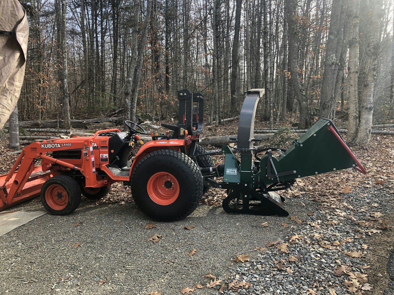 Very impressed with the quality and performance of our WC68 woodchipper. It attached perfectly to our Branson 4220, no mods required. With the hopper and chute tucked in, it's compact enough to use the tractor without it being in the way. We have pine, fir and madrone, which have all fed flawlessly up to 5-6" diameter and tree-length. Madrone, in particular, is twisty and has branches in all directions and can cause feed problems with chippers, but not this one. It feeds like a boss. The machine is built very strong, industrial quality. I've worked in the woods and sawmills most of my life around chippers and other equipment. I whole-heartedly recommend the Woodland Mills woodchipper.