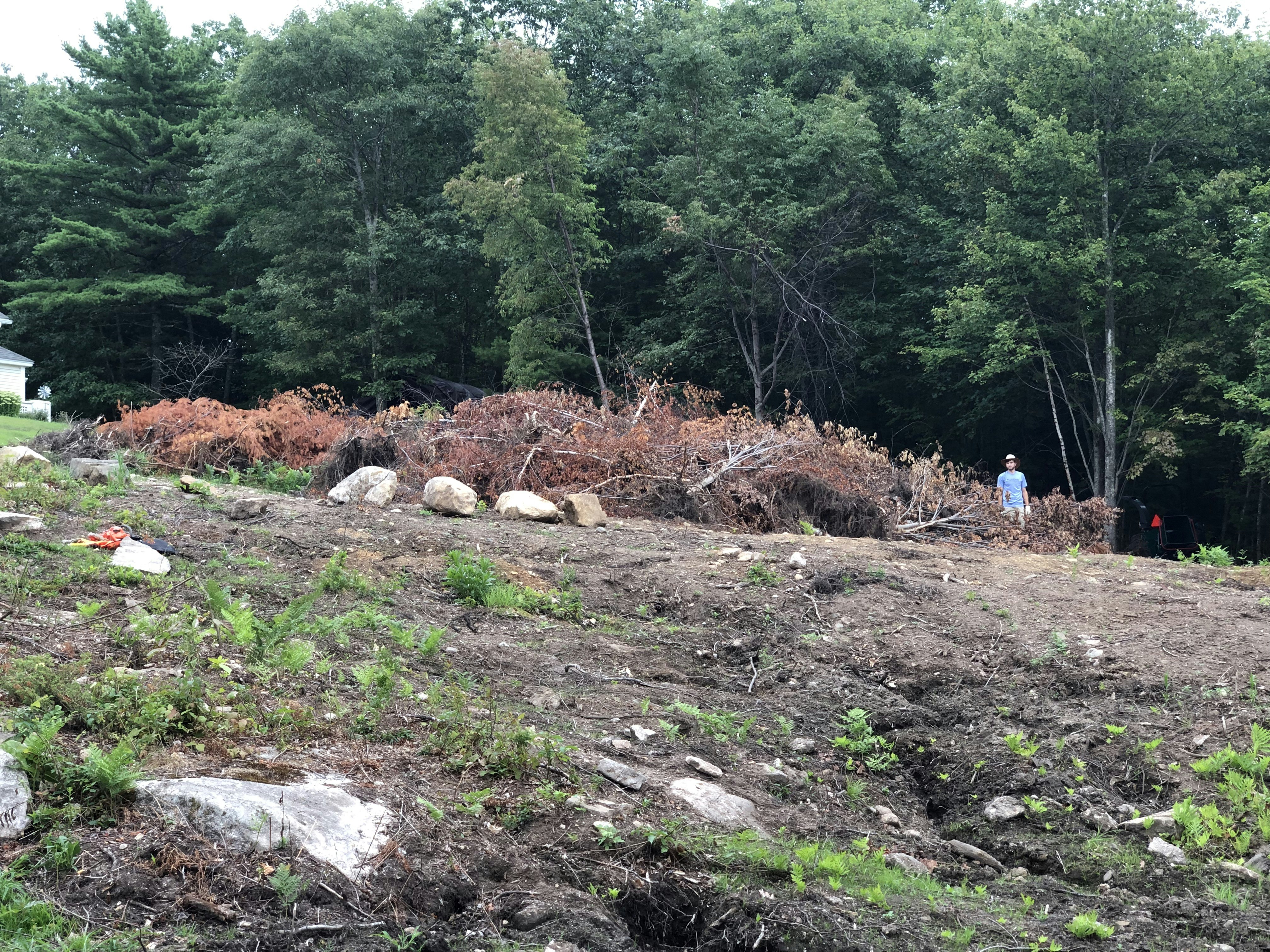 I am thoroughly enjoying my Woodland Mills WC88 Woodchipper! Before getting this one, I did a comprehensive online evaluation of tractor three-point hitch wood chippers, and it seemed like the WC88 was a cut above the next closest competition. I have not been disappointed with either the wood chipper or with the Woodland Mills people. Because my tractor only delivers about 34 HP at the PTO, Woodland Mills sales asked me if I knew about the WC68 and thought maybe it might be a better fit for the size of my tractor, but I decided to stick with the WC88 to make it easier to chip awkwardly shaped branches--anything larger than 3-1/2 inches becomes firewood here, not wood chips. And when I spoke to the support team to get help with shortening my PTO driveline, they were awesome to deal with. Anyway, even with our 34 HP PTO, our tractor did fine powering the WC88. We only had to slow down or reverse the feed if the piece was large hardwood. Performing maintenance on this machine is a dream because everything is so easily accessible. We chipped the trees we removed from nearly 3/4 acre on an overgrown hillside. Most trees were in the 1 inch to 3 inch range, but some were much larger. In the first picture, you can see the huge pile of trees waiting to be chipped. The tractor and chipper are on the far right tucked in the woods. The second picture is the after (with some boulders removed, too). Thanks for reducing the huge pile of trees into useful wood chips for my garden!