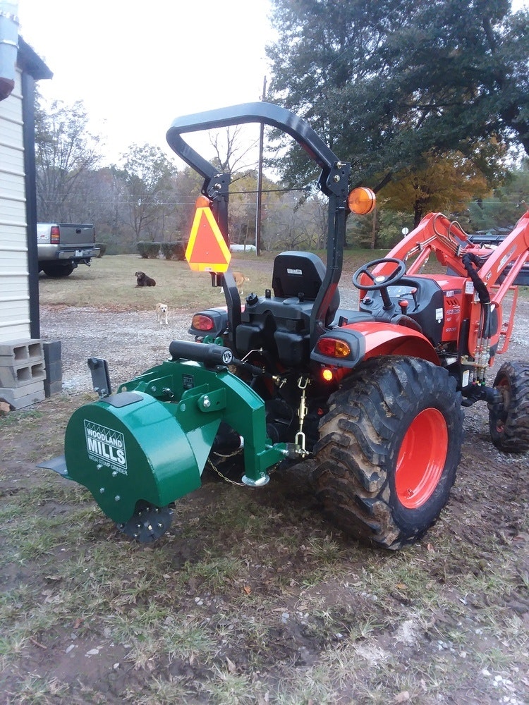 I have a ck3510hst kioti. PTO wg24 stump grinder works awesome. I grind over 25 stumps average stumps no bigger than 18" in diameter in less than a day. I highly recommend this stump grinder Great for your money and the package is very secure. Great job woodland mills. I also bought a wc68 chipper at the same time also a awesome chipper. Great for your buck.